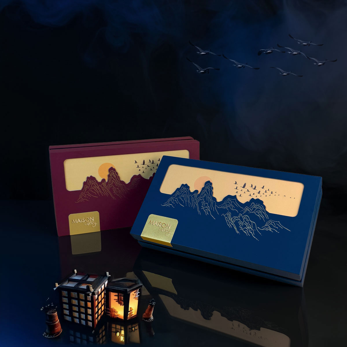 Vì thế, từ thiết kế hộp, màu sắc, chất liệu đến cách bài trí bên trong – tất cả đều được Maison Luxury chăm chút như một tác phẩm nghệ thuật. Không còn là hộp thiếc in hình quen thuộc, hộp bánh Maison sử dụng phong cách thiết kế sang trọng, hiện đại, kết hợp họa tiết Á Đông như vầng trăng, hoa sen, hoặc những đường nét cách điệu mang hơi thở phương Tây.