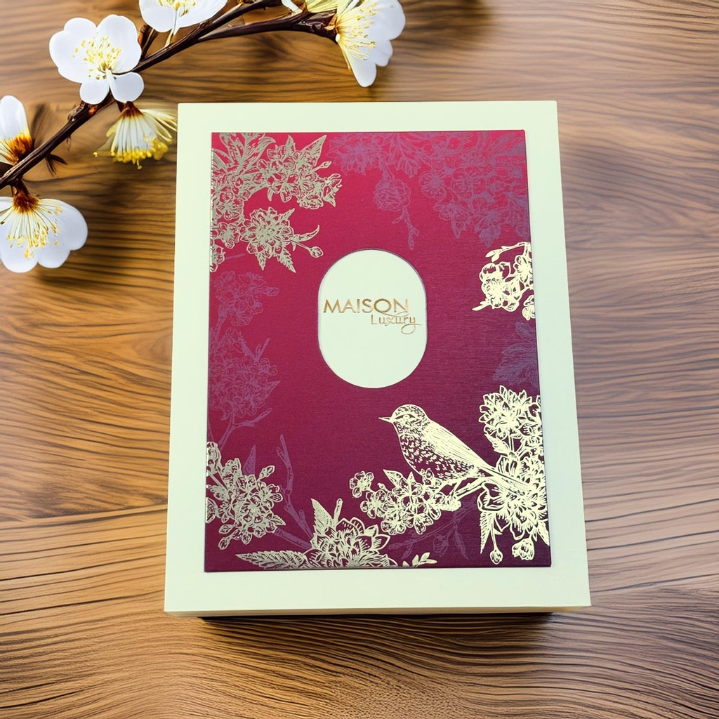 Hộp quà sở hữu 2 phiên bản màu sang trọng – Đỏ may mắn và Xanh an lành, tượng trưng cho hỷ khí và bình yên trong những ngày Tết. Sản phẩm được in offset chất lượng cao, cán màng tơ tằm mềm mịn tạo hiệu ứng ánh sáng nhẹ nhàng, cùng họa tiết ép kim tinh xảo mang đến cảm giác cao cấp, sang trọng trong từng chi tiết.