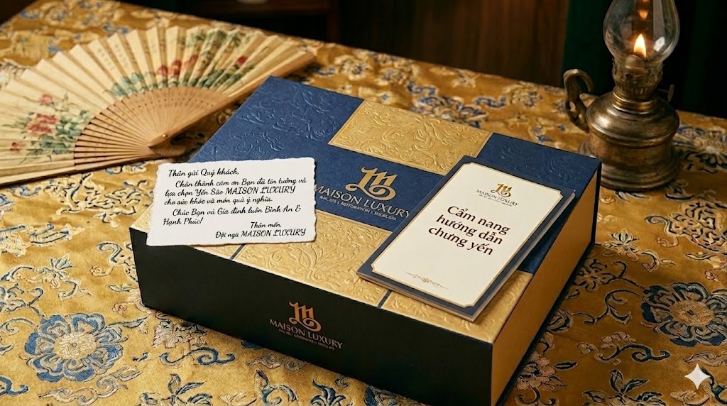 Hướng dẫn sử dụng: Hãy gửi kèm một vài công thức chưng yến đơn giản (ví dụ: chưng táo đỏ hạt sen, hay saffron). Điều này thể hiện rằng bạn không chỉ tặng quà, mà bạn còn quan tâm đến cách họ sử dụng sao cho bổ dưỡng nhất.